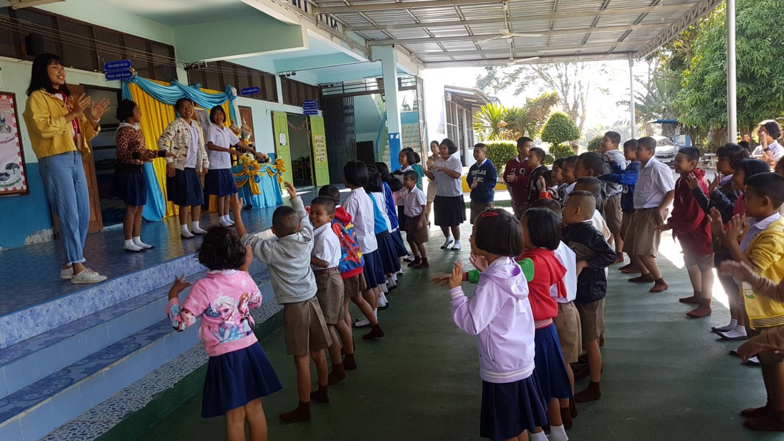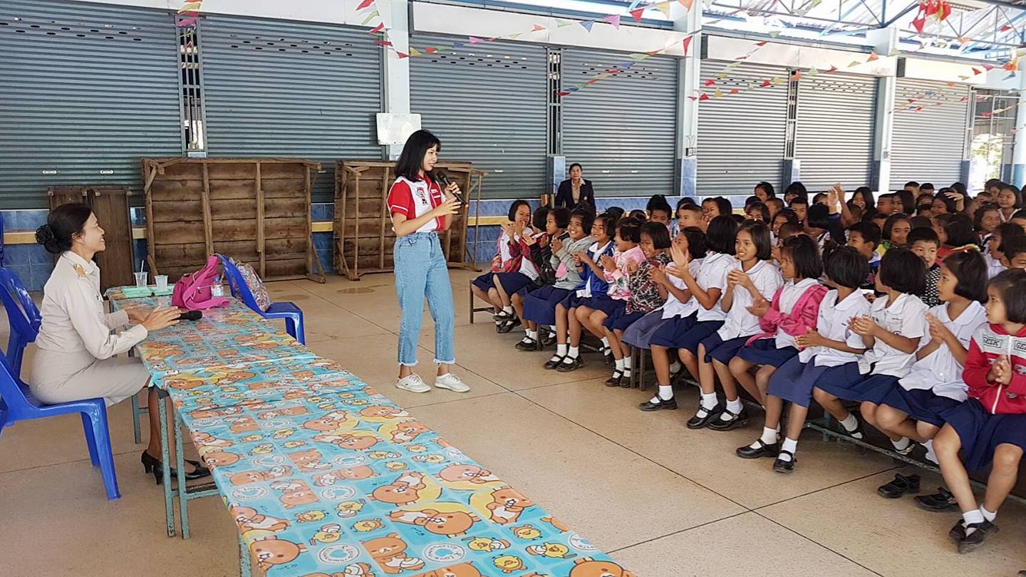 จากที่บีมได้มีโอกาสไปเข้าร่วมกิจกรรมโครงการสร้างคนเก่ง คนดี ศรีสังคม ที่จังหวัดชลบุรี บีมได้ไปทั้งหมด 4 โรงเรียนด้วยกัน การไปครั้งนี้เป็นการไปร่วมกิจกรรมครั้งแรกของบีม ความรู้สึกแรกเลยบีมรู้สึกตื่นเต้นมากเพราะเราเองไม่รู้ว่ารูปแบบกิจกรรมจะเป็นแบบไหน พอไปถึงแล้วเราจะได้ทำอะไรบ้าง เราจะทำได้มั้ย บีมกังวลทุกอย่างไปหมดเพราะไปครั้งนี้บีมได้ไปกับอาจารย์อรแค่สองคน บีมเลยยิ่งกังวลเข้าไปใหญ่ กลัวว่าตัวเองจะทำได้ไม่ดี แต่พอได้เจอกับอาจารย์อรจริงๆ อาจารย์อรเป็นคนที่เฟรนลี่มาก เป็นกันเอง เลยทำให้บีมรู้สึกตื่นเต้นน้อยลง กังวลน้อยลง อาจารย์ได้ให้บีมทำกิจกรรมกับน้องๆเพื่อเป็นการละลายพฤติกรรมและเป็นการเตรียมความพร้อม กิจกรรมที่ทำส่วนใหญ่จะเป็นการเล่นเกมส์ ร้องเพลง และเต้นสันทนาการ เพื่อที่จะเตรียมความพร้อมน้องๆก่อนที่จะให้อาจารย์อรได้มาพูดคุยกับเด็กๆ ในเรื่องของการนำ 10 ตัวชี้วัดมาใช้ในการดำเนินชีวิตประจำวันของตนเอง