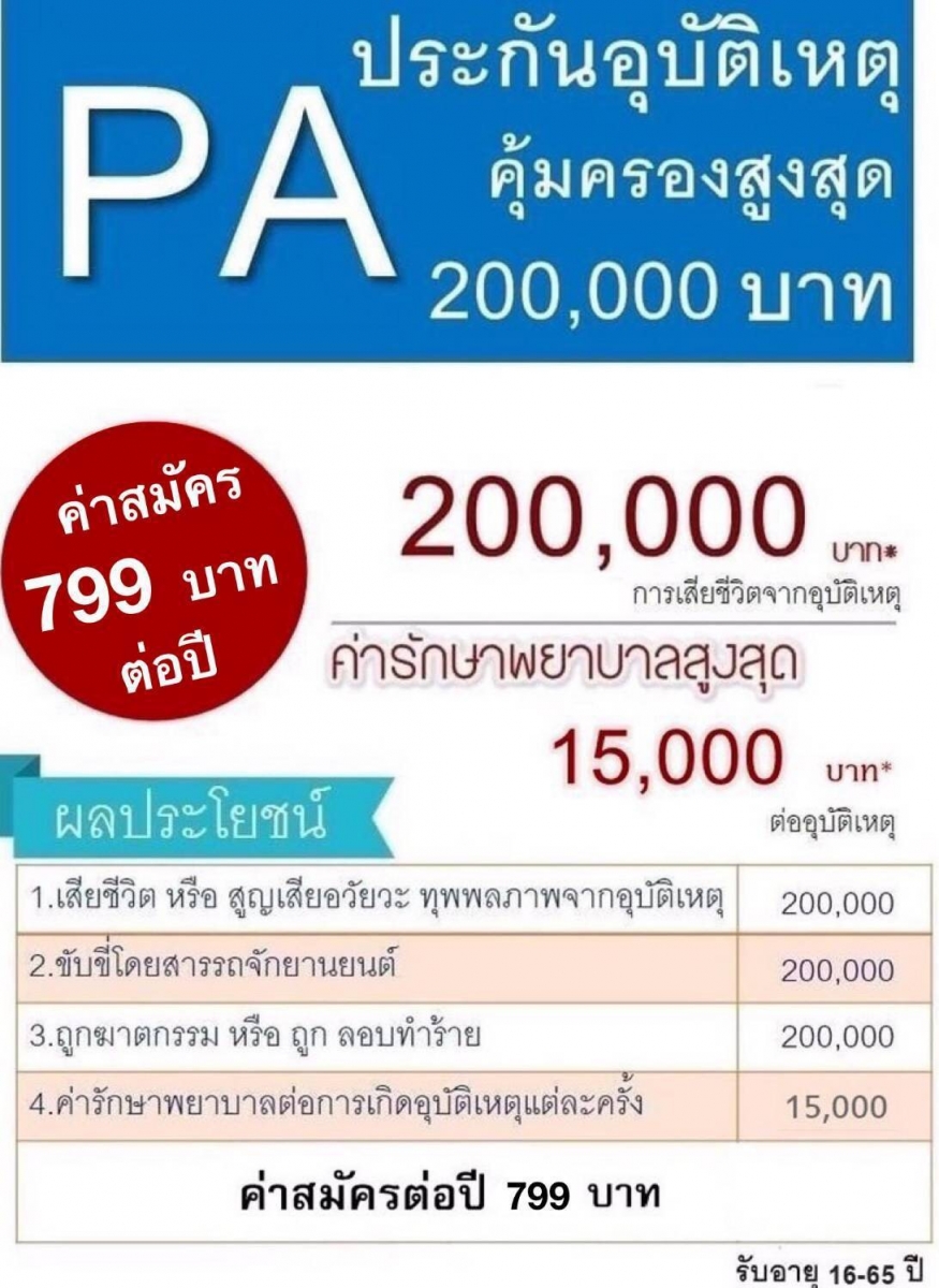 ประกันอุบัติเหตุ - PA ประกันอุบัติเหตุ เพียง 799 บาท