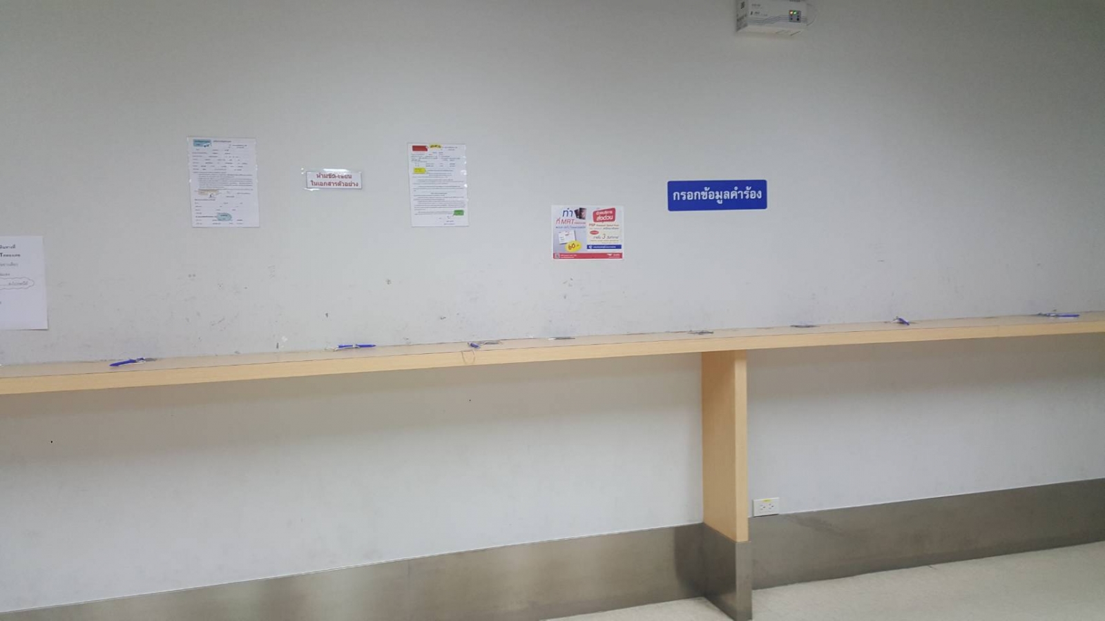 ซึ่งภายในจะมีโต๊ะนั่งรอและที่ให้บริการโดยมีที่ให้เข้าคิวทั้งแบบคิวจองออนไลน์และคิวธรรมดา เมื่อได้ จองคิวแล้วก็จะได้ใบสำหรับกรอกข้อมูลมา และนี่ก็คือมุมที่กรอกข้อมูลโดยจะมีปากกาวางไว้ให้บริการ