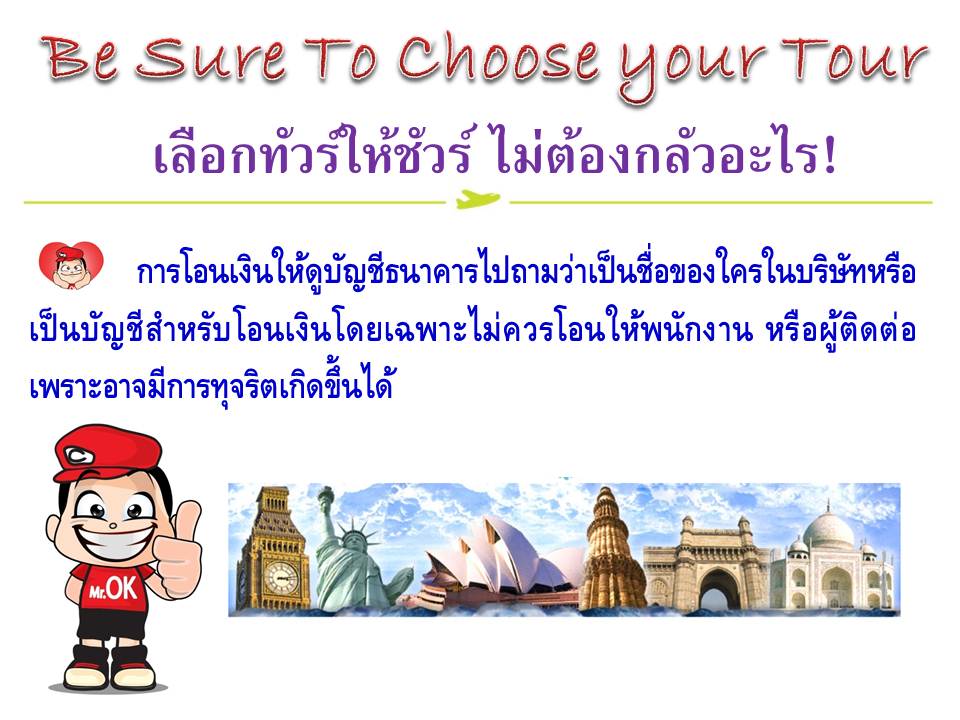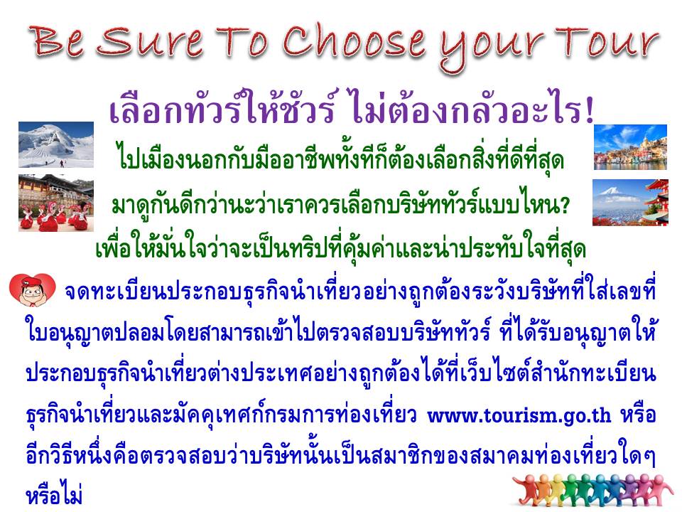 เลือกทัวร์ให้ชัวร์ ไม่ต้องกลัวอะไร การเลือกบริษัททัวร์และโปรแกรมทัวร์เพื่อให้เกิดความมั่นใจว่าดี คุ้มค่า และ ประทับใจที่สุด 1288